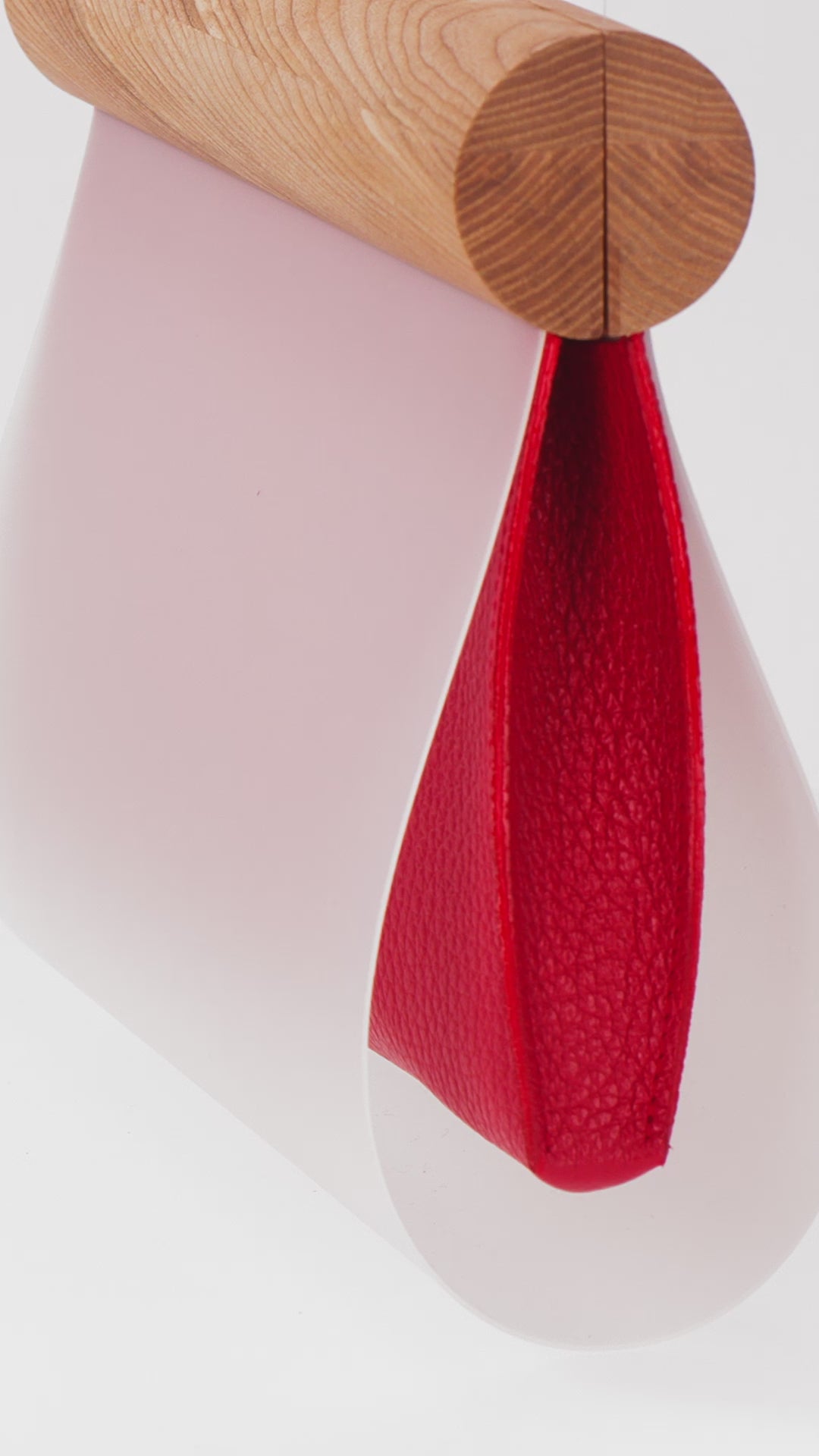 - Materials: Birch + natural matte coating, Italian leather, Plastic shield
